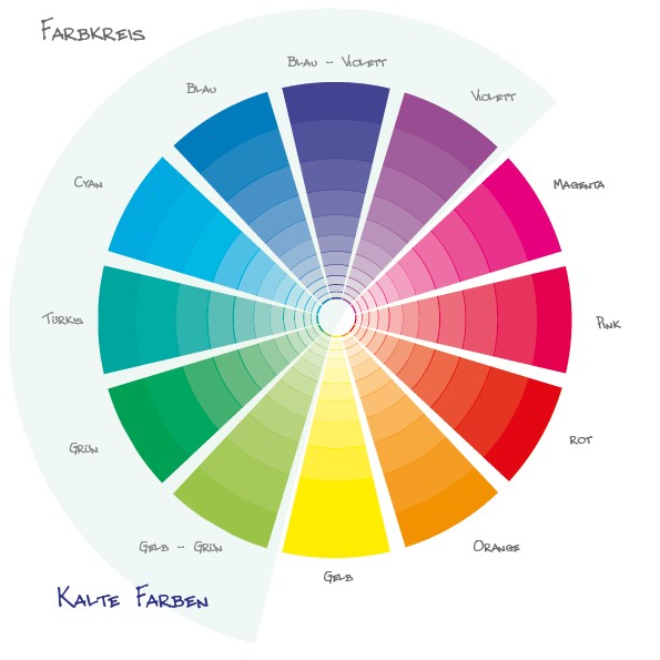 Sogenannte "kalte Farben" wie blau, grün, weiß, cyan, etc. lassen Räume erfrischend und gemütlich wirken. Sie sind somit Ideal in Bädern aber auch in Schlafräumen zu integrieren. Sie lassen uns gestärkt in den neuen Tag starten.Türkis -Türkis weckt in uns das verlangen nach Urlaub. Die Farbe erinnert uns an die weiten Sandstrände und Kilometerlangen Spaziergängen am Meer. Türkis ist eine sehr lebendige Farbe trotz ihres kalten Tons. Sie hat eine beruhigende Wirkung auf das Gemüt und lässt uns gleichzeitig offener im Umgang mit unseren Mitmenschen werden.